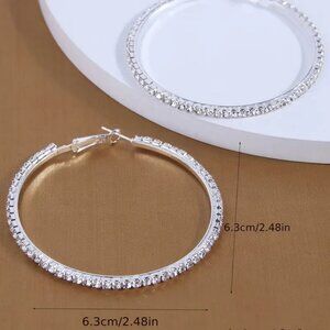 Exaggerated Hollow Round Shaped Hoop Earrings Full Of Shiny Rhinestones Alloy