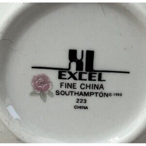The sugar bowl is part of the Excel Fine China product line and has a printed backstamp. It measures 5.50 inches in length and 4.50 inches in height. This decorative piece is perfect for serving sugar or other small items. Hand wash only is recommended for care instructions.