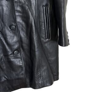Excelled Collection Vintage Y2K Leather Trench Coat Welt Pockets Black Size L