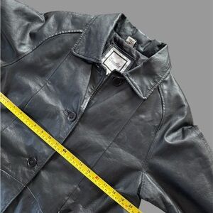 Excelled Collection Women's Black Long Leather Coat Button Jacket Lined Size M