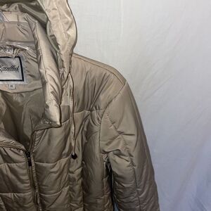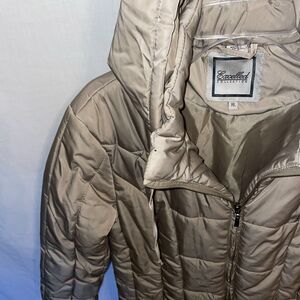 This womens beige Excelled Collection hooded coat is in great shape!