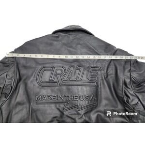 Excelled Promo Crate Embossed Leather Motorcycle Biker Jacket Sz 48 USA VTG 80s