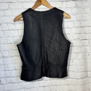 Excelled Black Leather Snap Motorcycle Biker Vest Womens Medium Full Zip