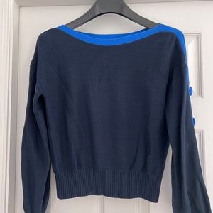 Like New, Banana Republic sweater, boatneck with large buttons down each sleeve. Navy with bright blue detail