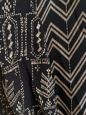 Black with gold pattern top. Adjustable waist. Size small but can adjust to fit a medium.