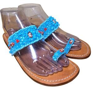 Excellent Condition Mystique Turquoise Beaded Leather Sandals Suede Lining Sz 7