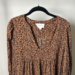Meet one of our favorite silhouettes, the Kenzo Dress. Featuring feminine flutter smocked cuffs, a V-neckline, and a loose empire waist, this is the most flattering flirty frock! Pair this leopard mini with flats for a casual look or dress up with heels and statement earrings for date night.