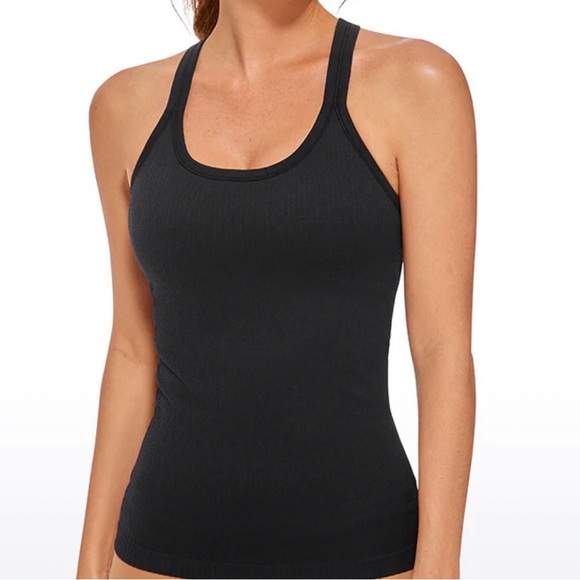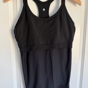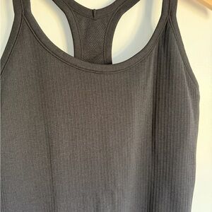 Excellent Condition. Seamless Racerback Ribbed Hip Length Tank. Interior tag removed. No flaws. Body: 100% Polyamide; Lining: 90% Polyamide, 10% Spandex.