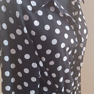 Excellent Condition Talie Black and White Lone Sleeve Polka Dot Blouse With Waist Tie. Gorgeous Top. Could Be Used With Leggings or Dress. Smoke Free Home. This is a Classic Look Perfect For Work or Play.