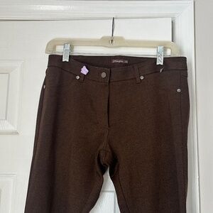 Excellent pair of J. McLaughlin pants, size 4. Rich chocolate brown color. Flat front slim trouser. 4 way stretch material.