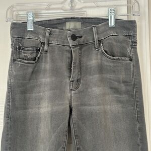 Excellent condition MOTHER jeans. The Looker Ankle Fray Style in color Last Chance Saloon, size 26. Beautiful grey gray wash with raw hem - perfect to dress up with heels or dress down with sneakers. Retails $220. Recent, current style. Slight Distressing