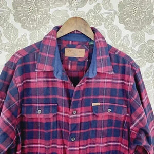 Excellent Orvis Men's L Flannel Button down Shirt Jacket Plaid 9245