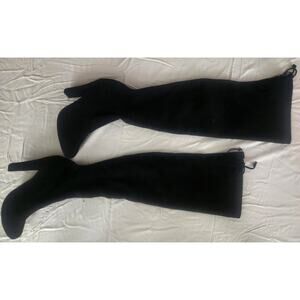The upper material is made of high-quality suede, combined with stretch features that ensure a comfortable fit for your legs. The model name is STEVE MADDEN Gorgeous, and they come in a solid black color that is perfect for any outfit. These boots are like new and are in excellent condition. Please ask all questions prior to bidding.