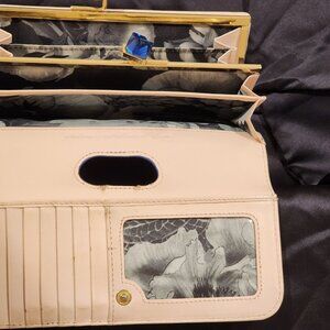 Ample interior compartments make it work as either a wallet or mini-clutch.