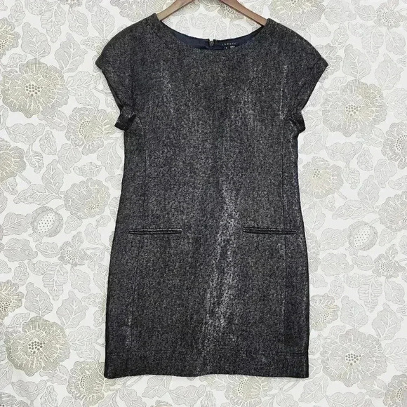Excellent Theory Black Shimmer Mini Shift Dress Size 4 Scoop neck Cap Sleeve