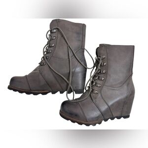 Excellent Used Condition- Women's (Size 9) Gray-Brown Lace-Up Boots 3 heel
