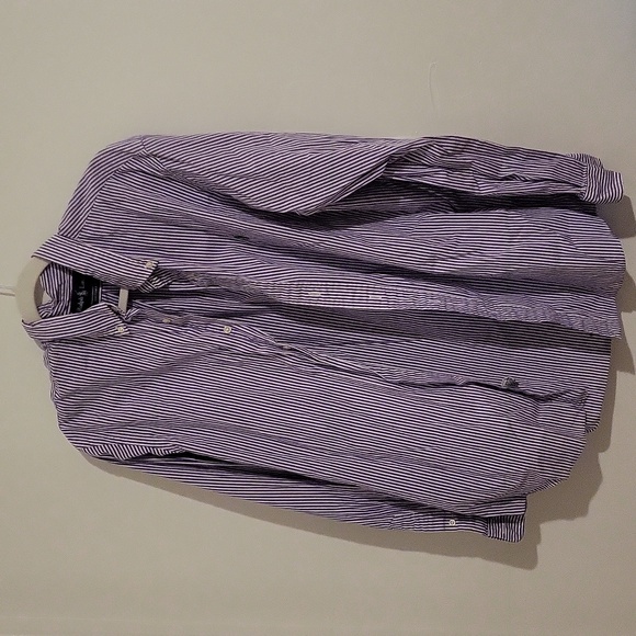 Excellent condition Ralph Lauren Custom Fit Button Up Size XL. Purple and White stripes. 100% cotton. no stains or signs of wearing. smoke free home. make a bundle with the other men's shirts for a discount!