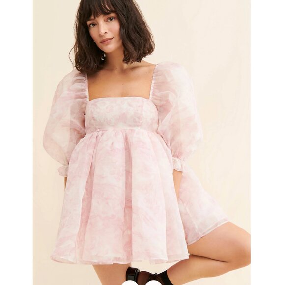 Excellent condition Selkie Puff Organza Mini Dress in pink and white