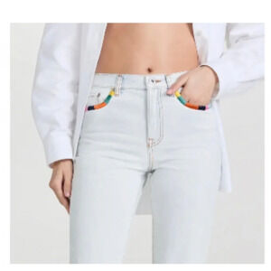 Excellent condition something navy straight leg jeans from Revolve size 00 with cute rainbow detail on pockets