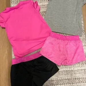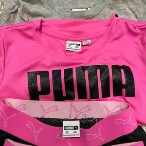 2 Puma tees and short sets. Hot pink, black and gray. Mix and match, excellent condition. Size XS 5/6 smoke free pet free home