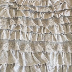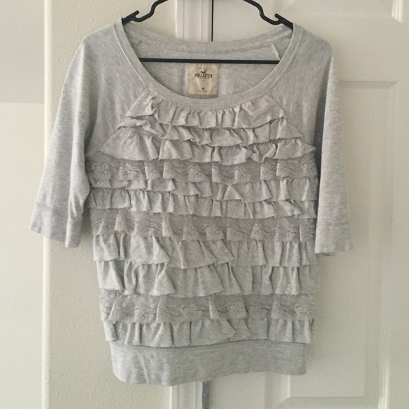 Grey Hollister top with lace ruffles and 3/4 length sleeves