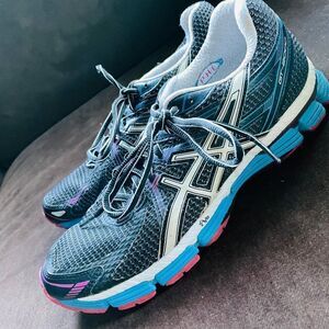 Excellent ASICS GT-2000 Black Blue Ruby Pink Womens 9, 40.5