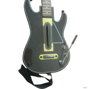 The Activision Guitar Hero Power Wireless Controller is a black plastic guitar-shaped controller designed for use with the Microsoft Xbox 360 and Sony PlayStation 3 gaming consoles. It allows players to immerse themselves in the popular Guitar Hero series with its wireless connectivity and compatibility with the consoles and games. The controller features the Activision brand and is a single unit made in China.