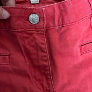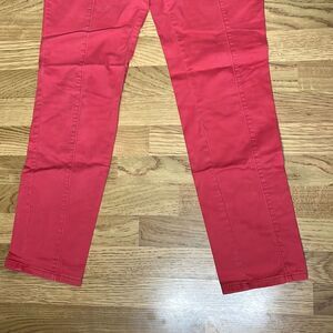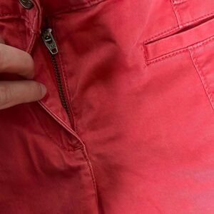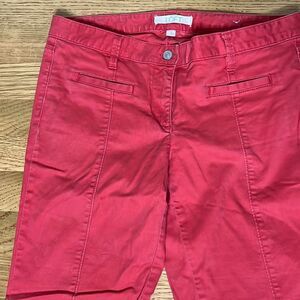 Straight leg size 6 faded red colored trousers by LOFT. With functional front button and zipper closure. These are great for work or everyday wear. The trousers are in excellent used condition with no known flaws. Comes from a smoke free home.