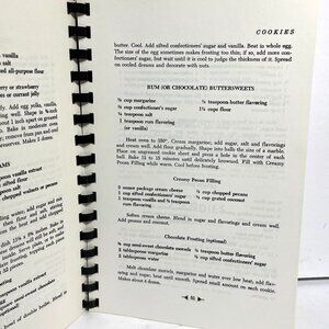 A vintage cookbook featuring recipes in ten sections, including breads, pastries, meats, and more.