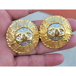 Authentic CHANEL Paris Huge 2-tone vintage earrings from the 80's