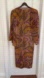 This stunning vintage matching metallic dress and jacket, from the 1960s or 70s, with a distinctive psychedelic or abstract print in shades of orange, purple, and brown. This matching dress and jacket set, features metallic threads for a shimmering effect. Size Large 10-14