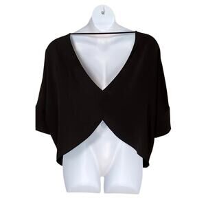 The front of the blouse floats gracefully to the hip line, grounded by deep stitched hem on the elbow length sleeves. The back panels are reduced and join the middle to frame the contours of the back. with no drift thanks to a single strappy tether at the nape of the neck. Crepe knit, not jersey (t-shirt) material.