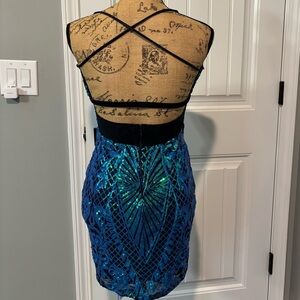 Excluded from Sale. Blue-Green Sequined Short Prom /Formal Dress