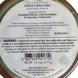 Exclusive Bath & Body Works 3 Wick Candle Scent FRESH BALSAM, 14.5 OZ