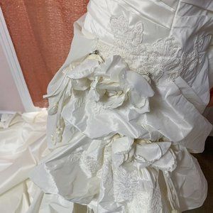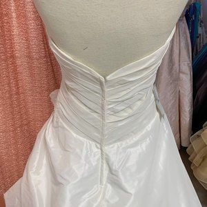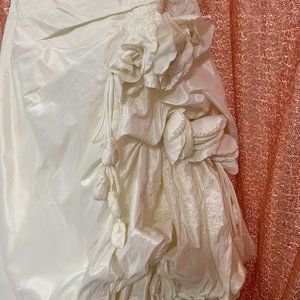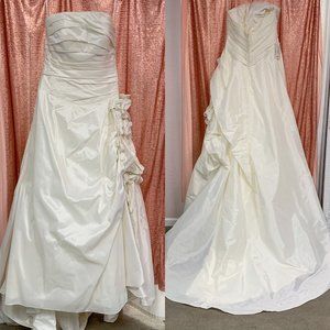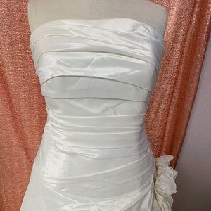 Strapless taffeta ruching with side flower in ivory