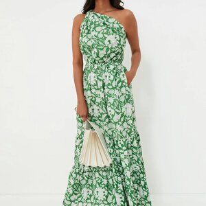A Tuckernuck exclusive and a best-selling style, the Green Botanica Long Dress is made from a brightly block-printed cotton with a chic, asymmetrical one-shoulder silhouette. An elasticated waist provides day to night comfort, and a maxi length makes it twirl-worthy enough for dancing the night away. From sunny vacations to summer weddings, this elegant yet effortless gown is a must-have! Pair with wedges, a clutch, and plenty of gold jewelry for a look that is sure to earn you some compliments.