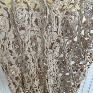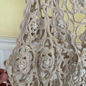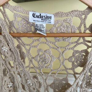 Exclusive Imports cream beaded Knit crochet vests tan bohemian long L