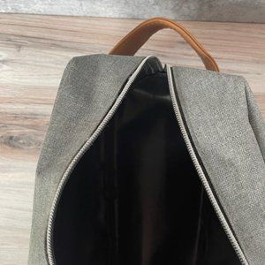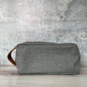 Charcoal Gray canvas dopp kit. 9" x 4 1/2" are the measurements.