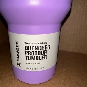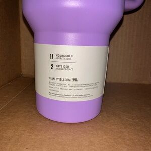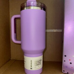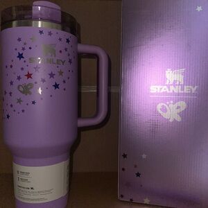 The *Exclusive* Olivia Rodrigo X Stanley Limited Edition 40oz Tumbler Cup is a stylish and functional three-piece set that includes a solid purple tumbler cup with a drink-through lid and a matching straw. Made of durable stainless steel and BPA-free plastic, this tumbler can keep beverages hot for up to 12 hours and cold for up to 10 hours. It features a convenient handle, insulated design, and is machine washable for easy care. With a capacity of 1.2 liters, this tumbler is perfect for both hot and cold drinks, making it a must-have for fans of Olivia Rodrigo and Stanley.