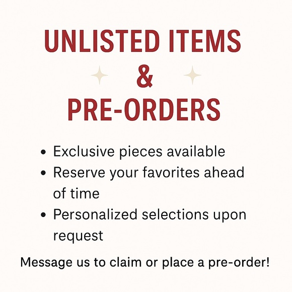 Reserve exclusive pieces ahead of time. Personalized selections available.