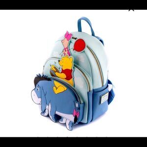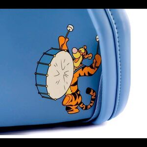 Celebrate the 95th Anniversary of Winnie the Pooh with Pooh Bear, Piglet, Eeyore, and Tigger as the Loungefly Exclusive - Winnie the Pooh 95th Anniversary Triple Pocket Mini Backpack. Winnie the Pooh and Piglet ride on Eeyore’s back while on the back side of the backpack Tigger plays a drum to signal the celebration. This backpack is perfect for carrying your necessities no matter where the parade takes you. Act fast to collect this Loungefly.com exclusive; supplies are limited.