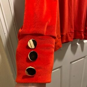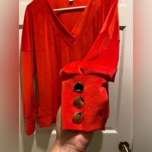 Stay cozy and stylish with this vibrant red V-neck sweater. Perfect for any occasion.