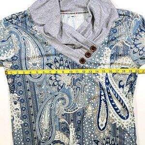 Exclusive ❤ - Women's Size M - Blue & Gold Paisley Design - Long Sleeve