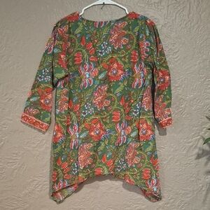 Embrace vibrant style with the Women's Floral Green Top. This eye-catching piece features a lively floral pattern in green and red, perfect for adding a pop of color to your wardrobe. Ideal for casual outings or a day at the office.