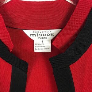 Beautiful vivid red cardigan with black trim and faux pockets. Excellent for the holidays. Like brand new. Never worn. No tags. 19” pit to pit, 25” long. O62