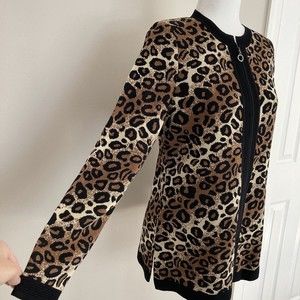 Exclusively Misook Animal Print Full Zip Knit Jacket Size XS Leopard Print