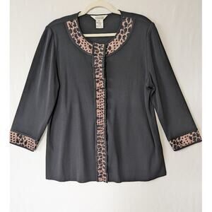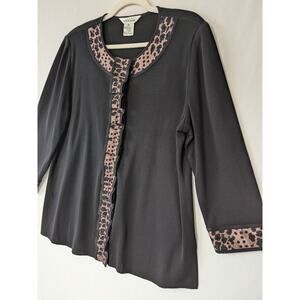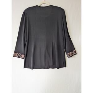 Exclusively Misook Black Animal Print Trim Cardigan Size XL Ruffle Career Office