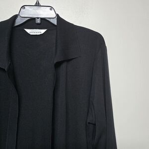 Exclusively Misook Black Collared Open Front Side Slit Cardigan L