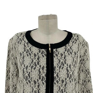 Exclusively Misook Black Cream Lace Zip Sweater Jacket Size Large