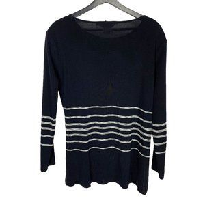 Exclusively Misook Black Stripe Pattern Long Sleeve Top Large